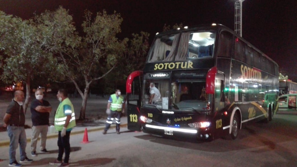 Previamente, equipos sanitarios realizan los controles de salud pertinentes a cada pasajero, para conocer su estado de salud al momento del ingreso, y realizar el posterior seguimiento. “Se les toma la temperatura y se les brindan los insumos necesarios – barbijo y alcohol en gel – para que puedan trasladarse en los vehículos a sus domicilios”, explicó .