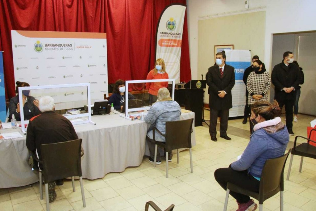 El gobernador Jorge Capitanich y la intendenta de Barranqueras, Magda Ayala, supervisaron el operativo integral de atención que la ANSES llevó a cabo este miércoles en el Centro Cultural La Flota de la ciudad portuaria. Son operativos móviles que se asientan en diferentes puntos de la provincia y tienen por objetivo facilitar la realización de trámites de las y los vecinos con todas las normas de bioseguridad.