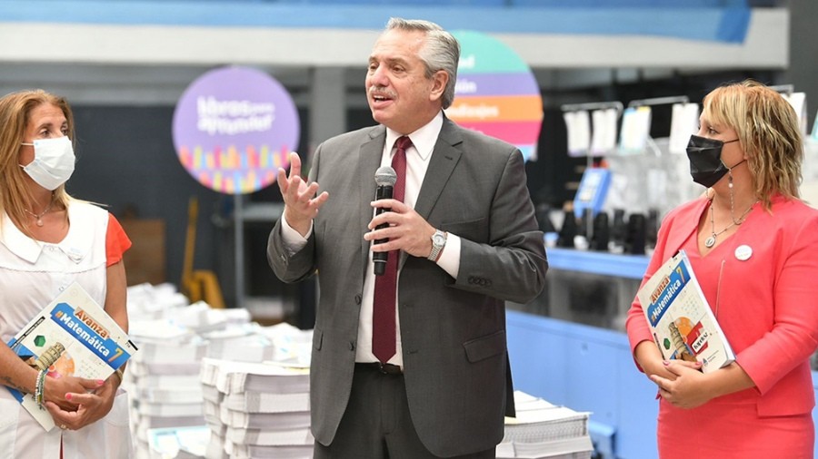 Fernández también relacionó la iniciativa con la recuperación económica y señaló que en la planta de Loma Hermosa "están en condiciones de hacer 35.000 libros, y hay muchas industrias" que están trabajando para llevar "los libros a alumnos de todo el país".