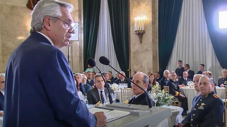 El presidente Alberto Fernández anunció esta noche un "proceso de regularización salarial" para las Fuerzas Armadas, que incluirá una "jerarquización profesional y reordenamiento salarial que se hará efectivo a lo largo del año".