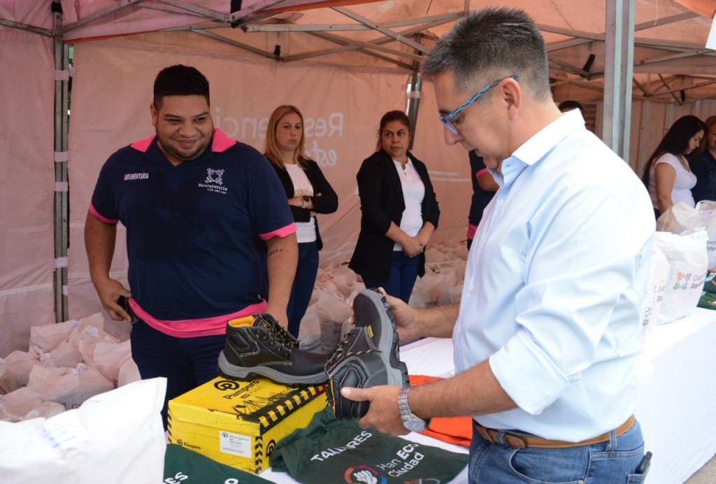Gustavo encabezó la entrega de 232 kits de indumentaria para renovar los uniformes de los trabajadores dependientes de direcciones de servicios que se encargan del mantenimiento de la vía pública. “Es nuestro compromiso que el trabajador pueda tener los elementos necesarios y así lo vamos a ir haciendo año tras año”, detalló.