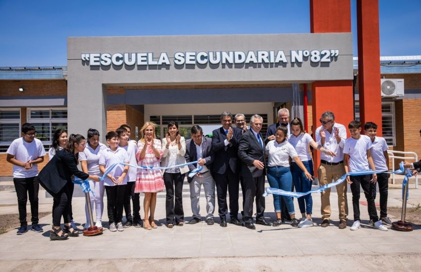El gobernador y el presidente de la Nación inauguraron un nuevo edificio de educación secundaria, el primero en ser construido con financiamiento internacional en la provincia. Lleva el nombre de René Favaloro y fue totalmente equipado con mobiliario para beneficiar a los más de 240 estudiantes que asisten diariamente.