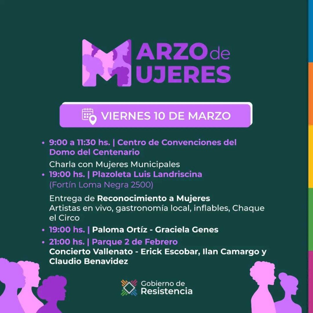 Preparan un concierto de vallenato por el mes de las mujeres en Resistencia. Se realizará en el Parque 2 de Febrero este viernes. Además, se preparan actividades culturales y sociales desde la mañana.