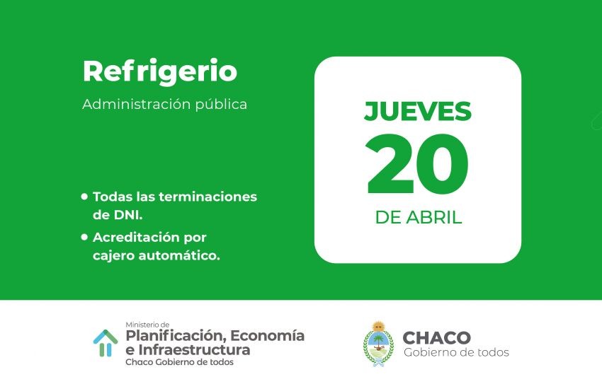 El Ministerio de Planificación, Economía e Infraestructura informó que el cronograma de pagos previsto de abril comenzará este jueves 20, con la acreditación del Refrigerio para las y los trabajadores activos de la Administración Pública.