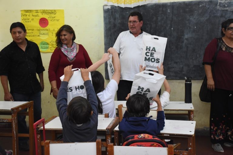 En igual sentido, indicó que “el kit de este año viene para los docentes también y se hace entrega al mismo tiempo que a los chicos y chicas”, y amplió diciendo que “es una forma de reconocer el gran esfuerzo que ellos también hacen”.