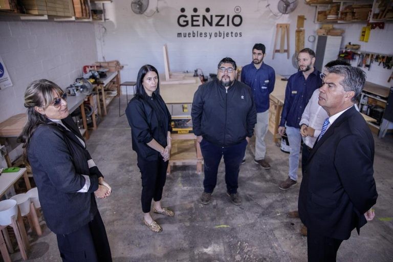 Con la asistencia del Estado el emprendedor Enzo Vicchi adquirió nueva maquinaria y montó un taller para producción en serie. Además, el gobernador visitó un taller textil coordinado por ex combatientes y movilizados de Malvinas.