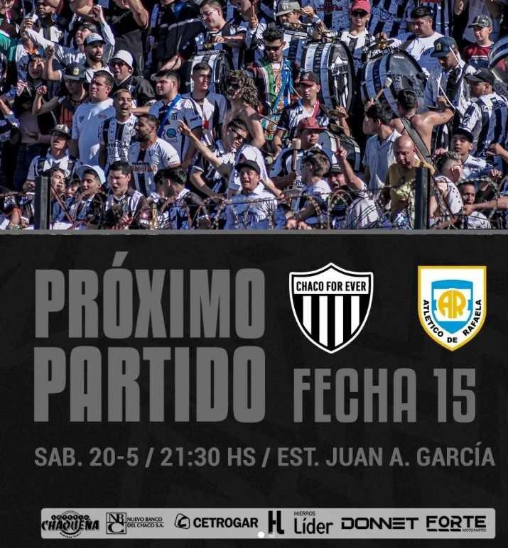 Este jueves 18, a partir de las 17, comienza la venta de entradas de cara al partido que, por la 15° fecha del Torneo de Primera Nacional, disputarán Chaco For Ever y Atlético Rafaela, el sábado, desde, las 21:30, en el Gigante de la Avenida “Juan Alberto García”.