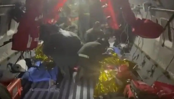 Se difundió un video en que se ve cómo los niños son asistidos por profesionales en el avión sanitario que los trasladó.