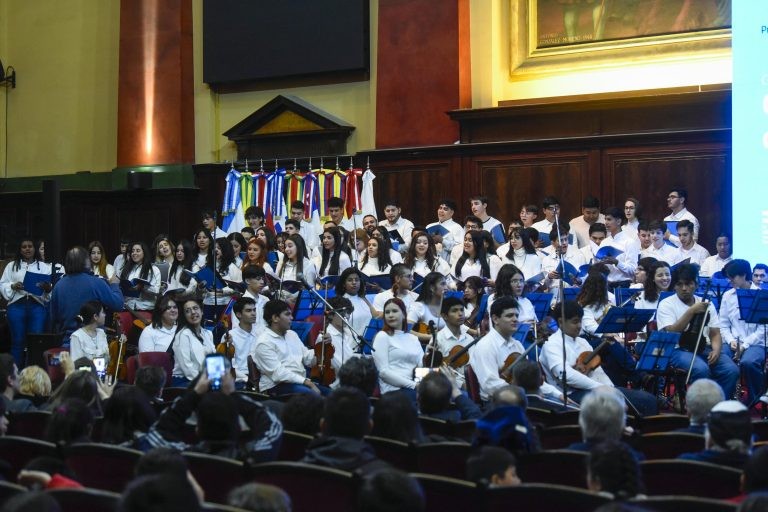 En una semana intensa de ensayos se conformó, a propuesta del Ministerio de Educación de Nación, un ensamble con 120 músicos y cantantes provenientes de Argentina, Brasil, Uruguay y Paraguay. En el auditorio de la Facultad de Derecho de la UBA, brindaron un emotivo espectáculo para dar cierre a la Reunión de Ministros de Educación del bloque internacional.