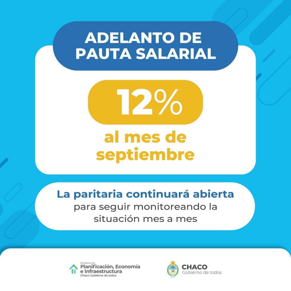 El gobierno provincial abonará este viernes 15 el adelanto del incremento del 12% de la pauta salarial (prevista originalmente para octubre). La medida alcanza a las y los trabajadores activos y jubilados e incluye incrementos para las becas provinciales con contraprestación laboral (Más Inclusión, Instituto del Deporte, Conveniados del Instituto de Cultura y Servicio y Mantenimiento escolar).