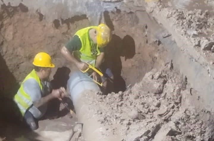 Agentes de la empresa, en conjunto con empleados de la comuna de Las Palmas trabajaron a contrarreloj para reparar la rotura de esa cañería.