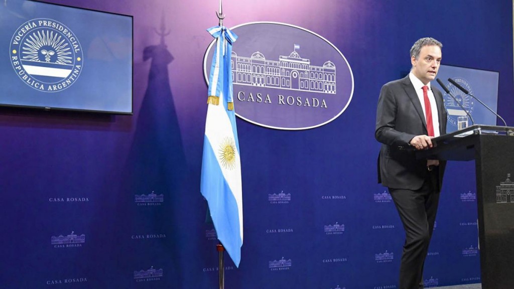 El vocero presidencial dijo que "dentro del paquete fiscal también se retiran las facultades delegadas en materia fiscal y previsional". Consultado sobre el incendio en el Parque Nacional Los Alerces, afirmó que si se descubre que fue intencional, "los responsables tendrán que estar tras las rejas o extraditados", según corresponda.