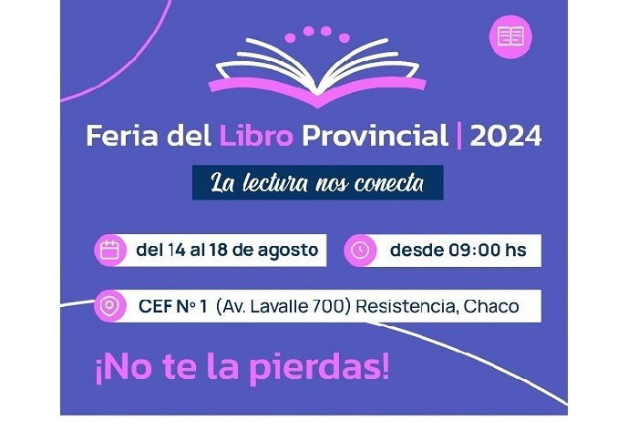 Este miércoles 14 de agosto a partir de las 9 se inicia la Feria Provincial del Libro 2024, bajo el lema "La lectura nos conecta", organizada por el Ministerio de Educación de la provincia, a través de la Dirección de Servicio Bibliotecario. La misma se desarrollará hasta el domingo 18, en las instalaciones del Centro de Educación Física N° 1 de Resistencia -avenida Lavalle 700-, con la participación de 17 bibliotecas populares, librerías y emprendedores locales, espectáculos artísticos y numerosas propuestas para estudiantes, docentes y público general.