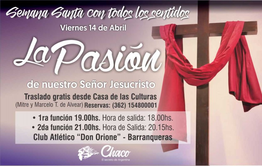 Llega Semana Santa, una de las conmemoraciones más significativas de la comunidad católica. En ese marco, en una acción coordinada entre el Instituto de Turismo y la municipalidad de Barranqueras invitan a la obra teatral en la que se recreará “La pasión de Nuestro Señor Jesucristo”.